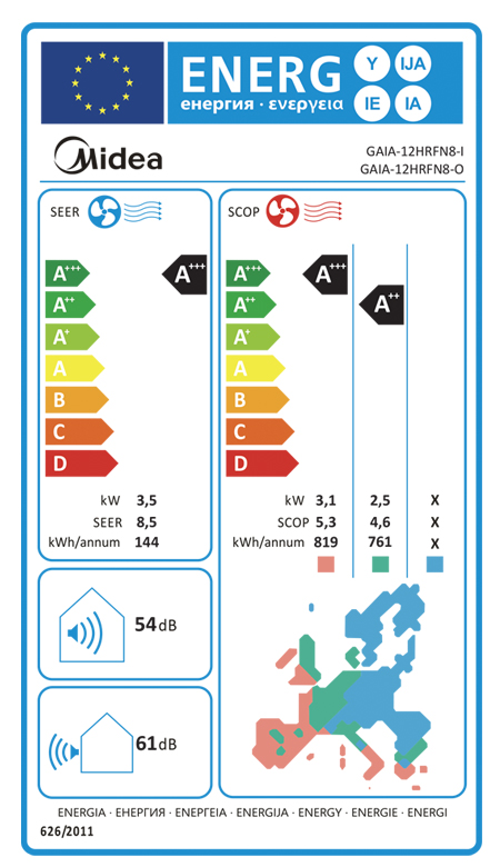 Енергиен клас: A+++ (охлаждане) / A++ (отопление)